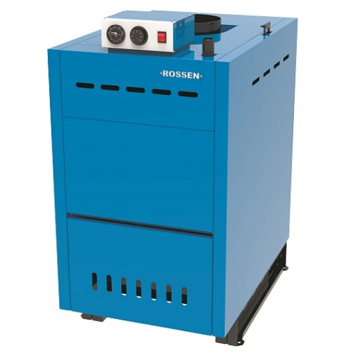 Котел RSA 80Э имеет открытую топку и оборудован атмосферной горелкой. Теплообменник производится на Заводе Rossen, выполнен из оребренных труб с увеличенной поверхностью теплоотдачи.