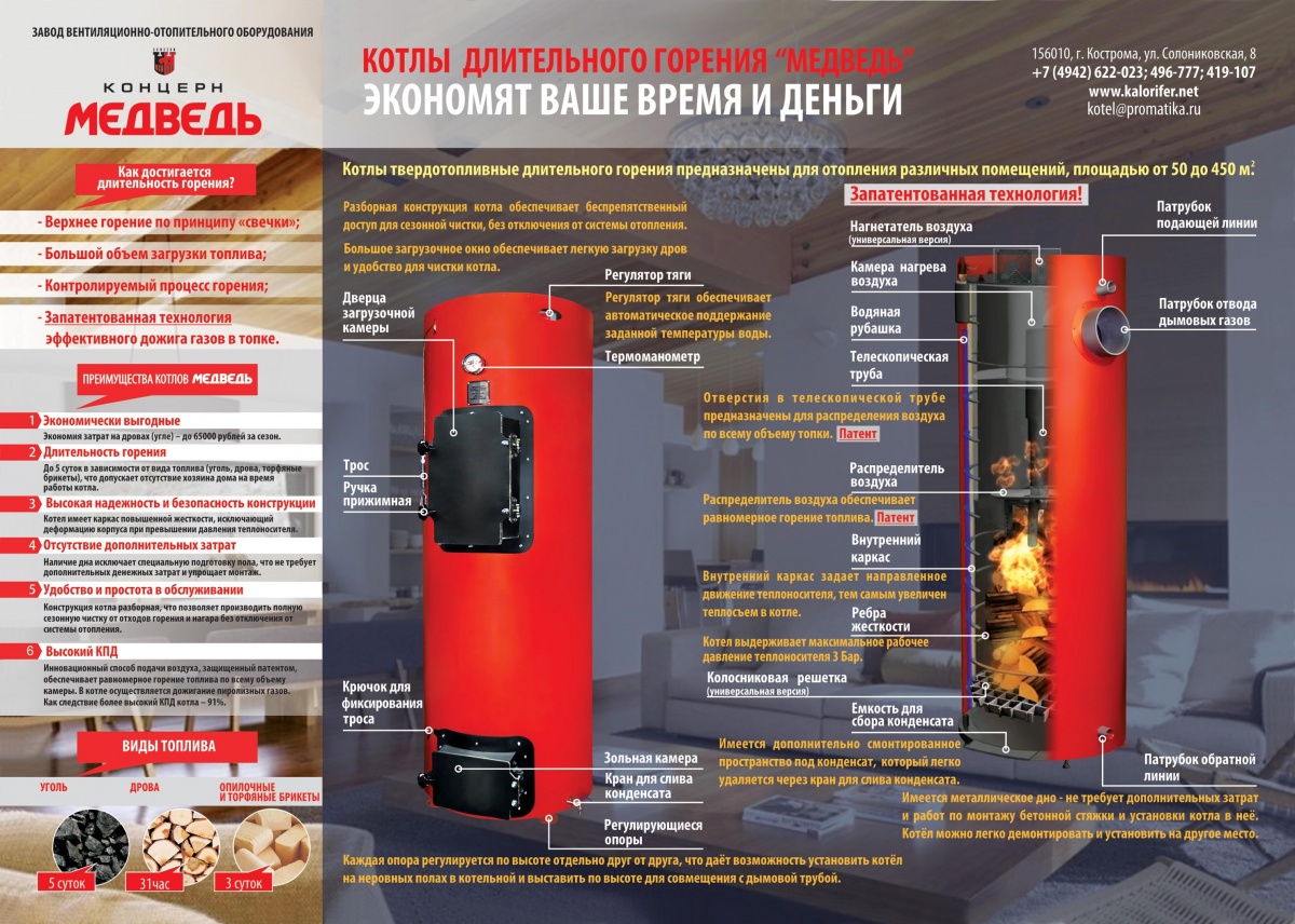 Конструктивные особенности котла длительного горения Медведь: