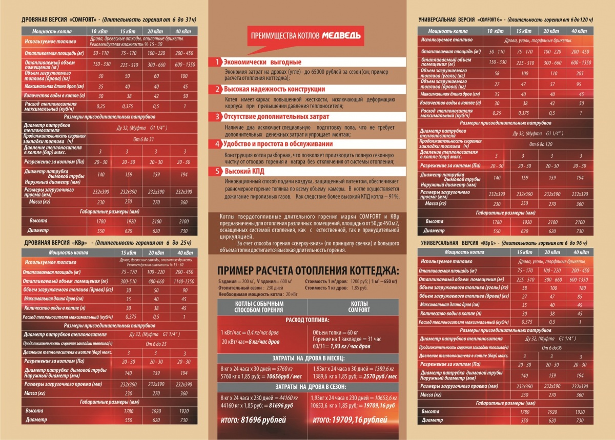 Технические характеристики котла Медведь Comfort G универсальная версия