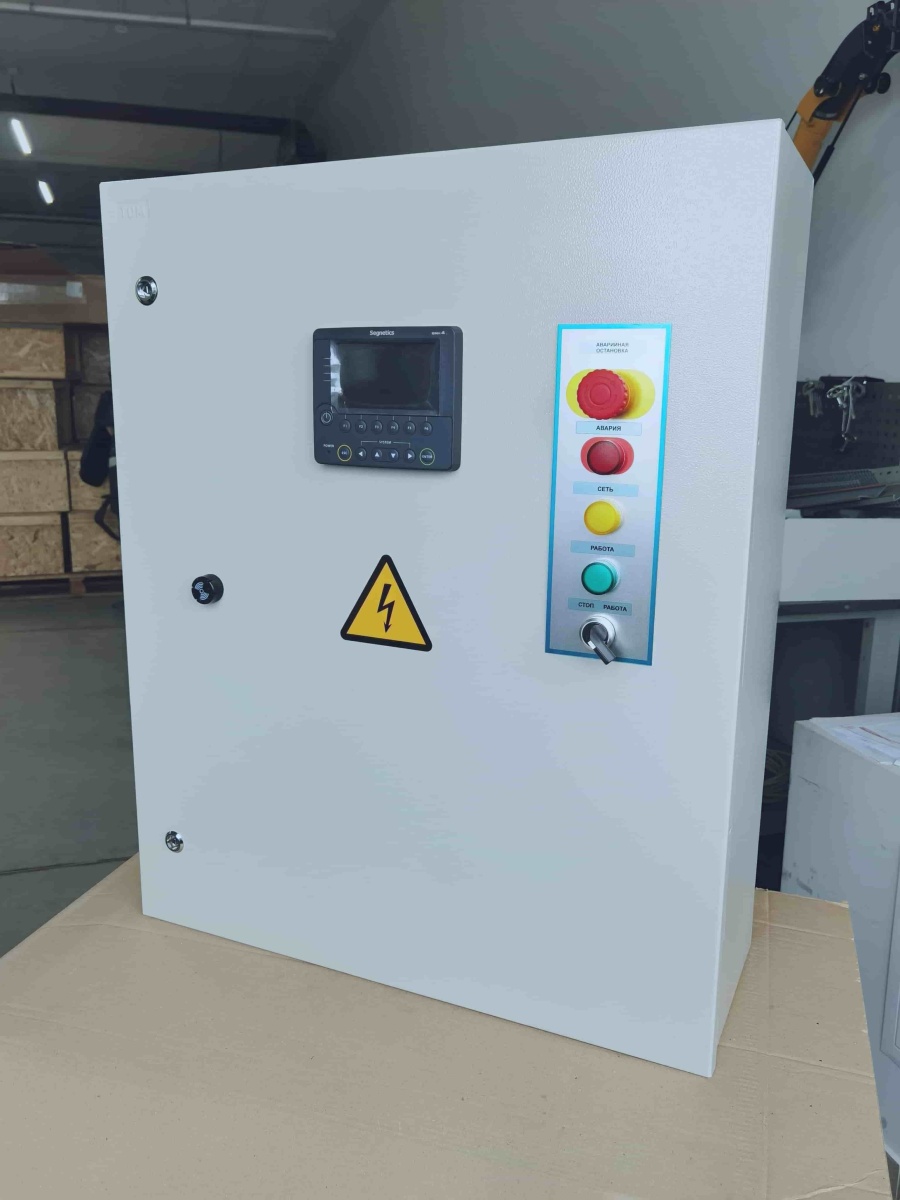 Система автоматики работает на контроллере Segnetics SMH4. Контроллер принимает сигналы с датчиков и выдает управляющие сигналы, соответствующие режиму и алгоритмам работы, на исполнительные устройства и реле для управления технологическим оборудованием. Шкаф имеет степень защиты IP54.