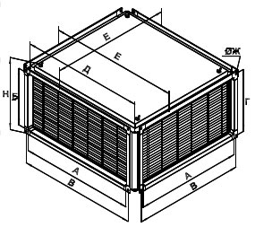 • Корпус из оцинкованного стального листа, оснащённый фланцами.